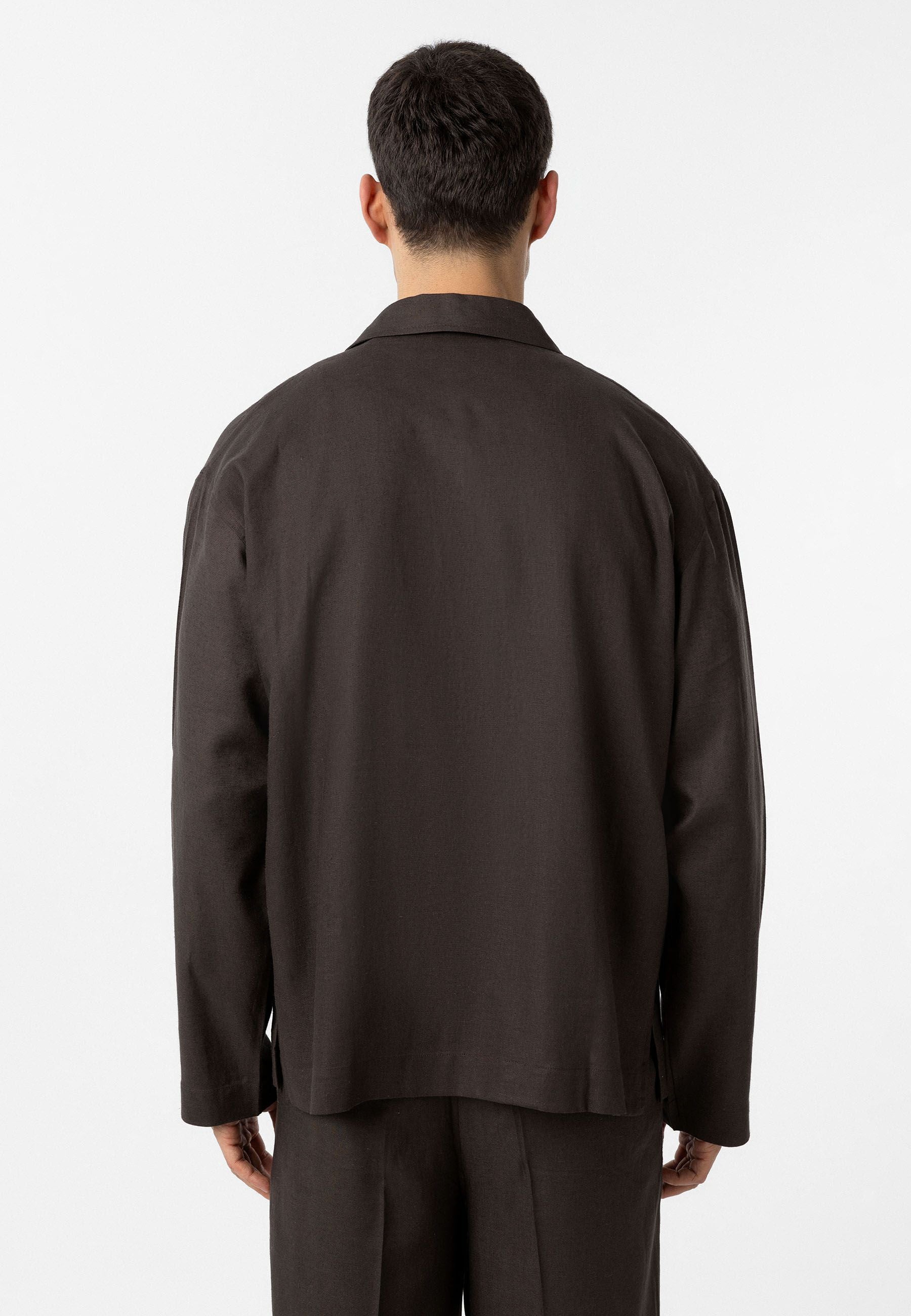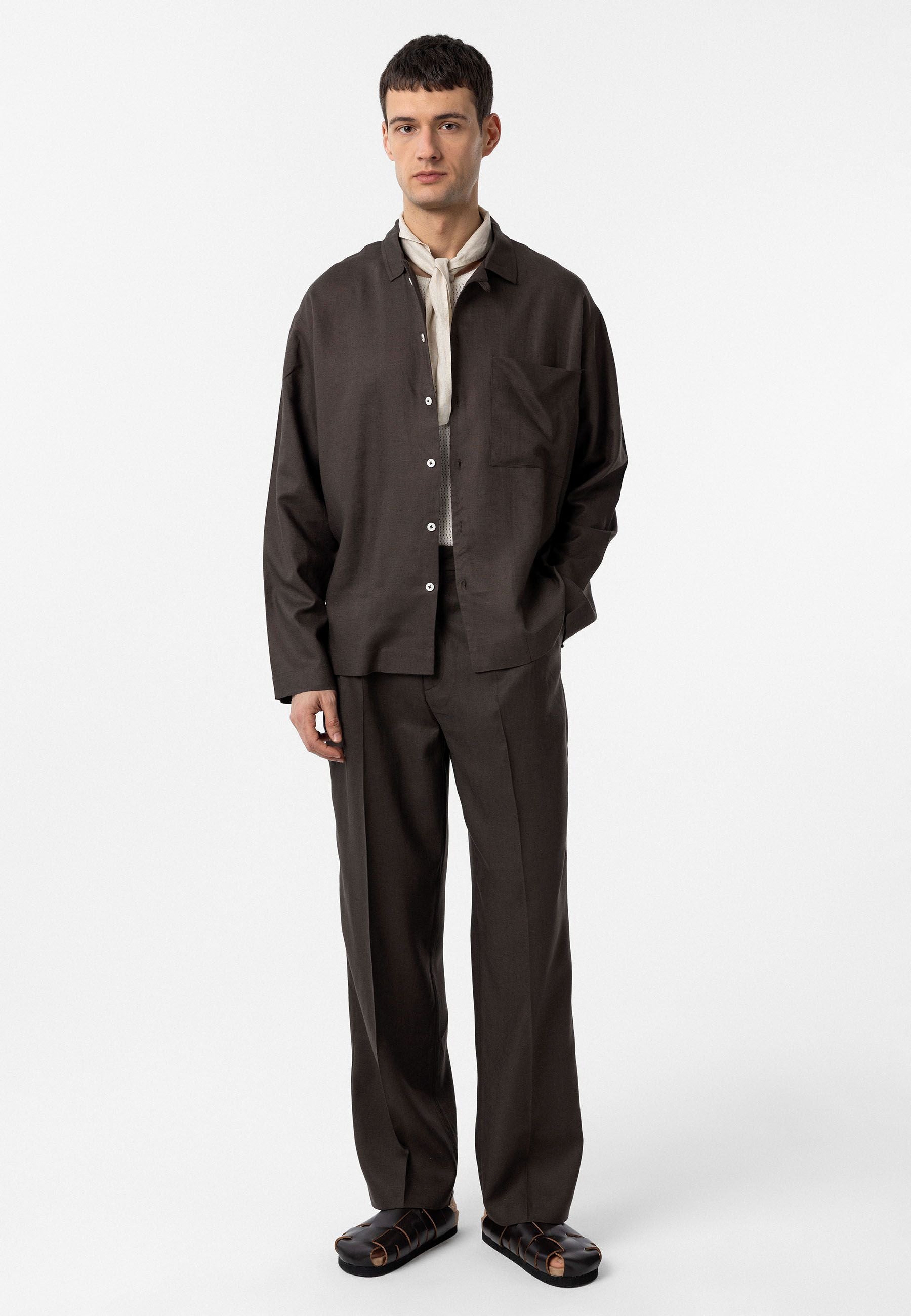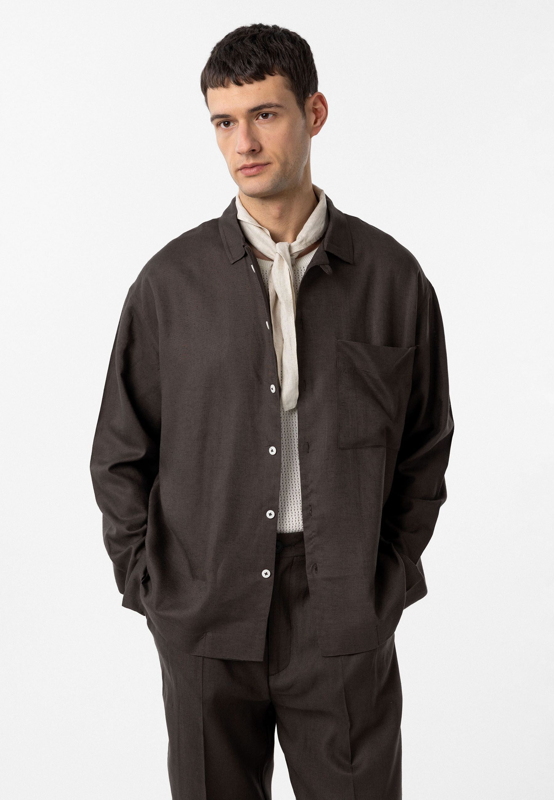 Loose fit, Lapel Collar, Chest Pocket Detailed, Long Sleeve Shirt. Material 50% Linen 50% Viscose. Do not tumble dry, machine wash at 30°C. Our Model is 189,5 cm tall and is wearing size L