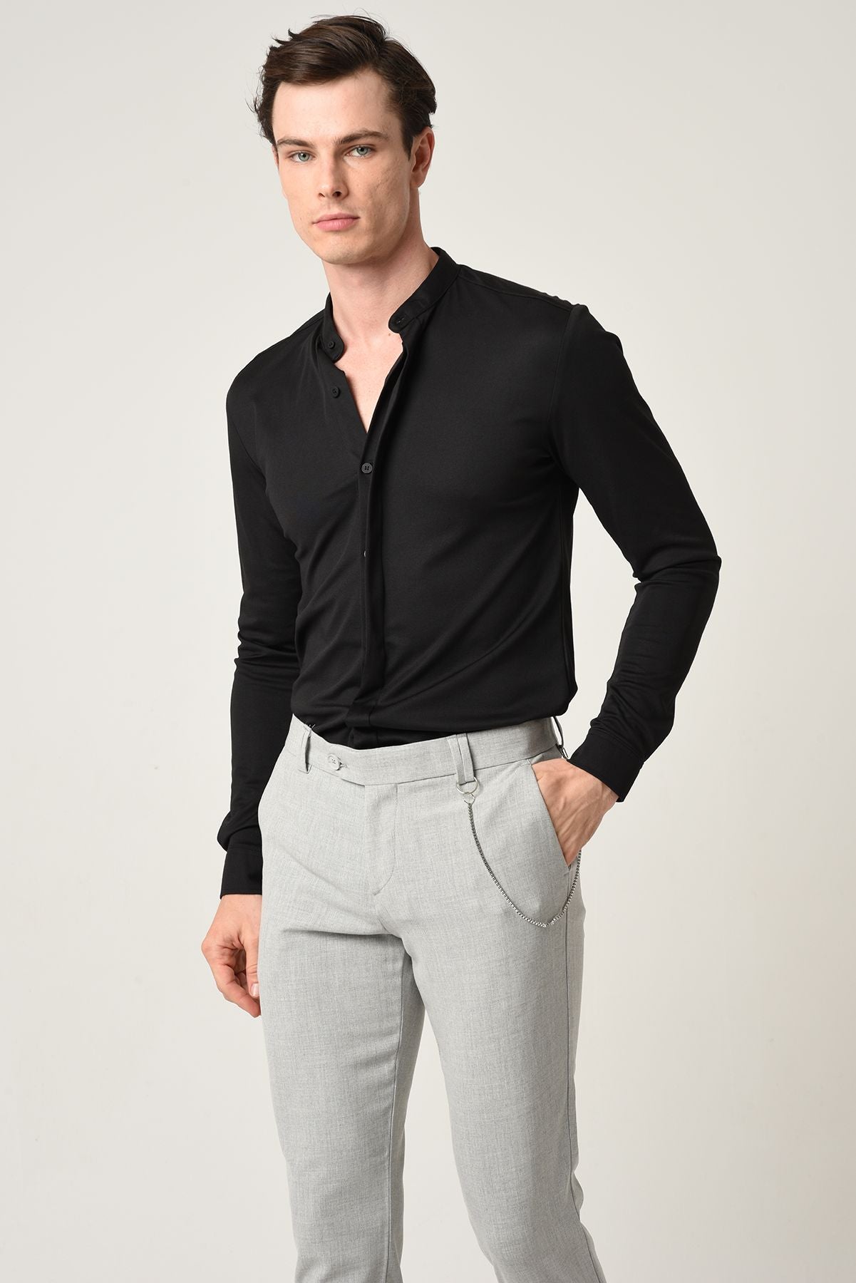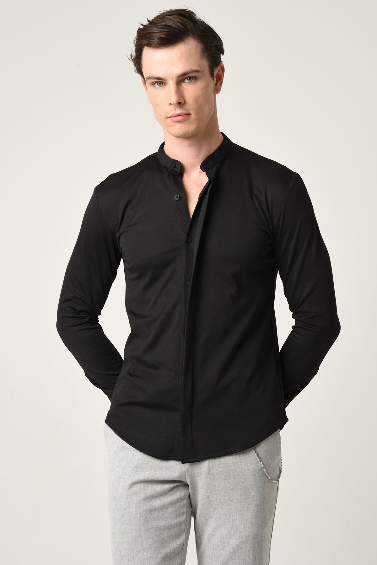• Modern Design: The grandad collar and hidden button placket provide a contemporary, streamlined look, perfect for both formal and casual occasions.