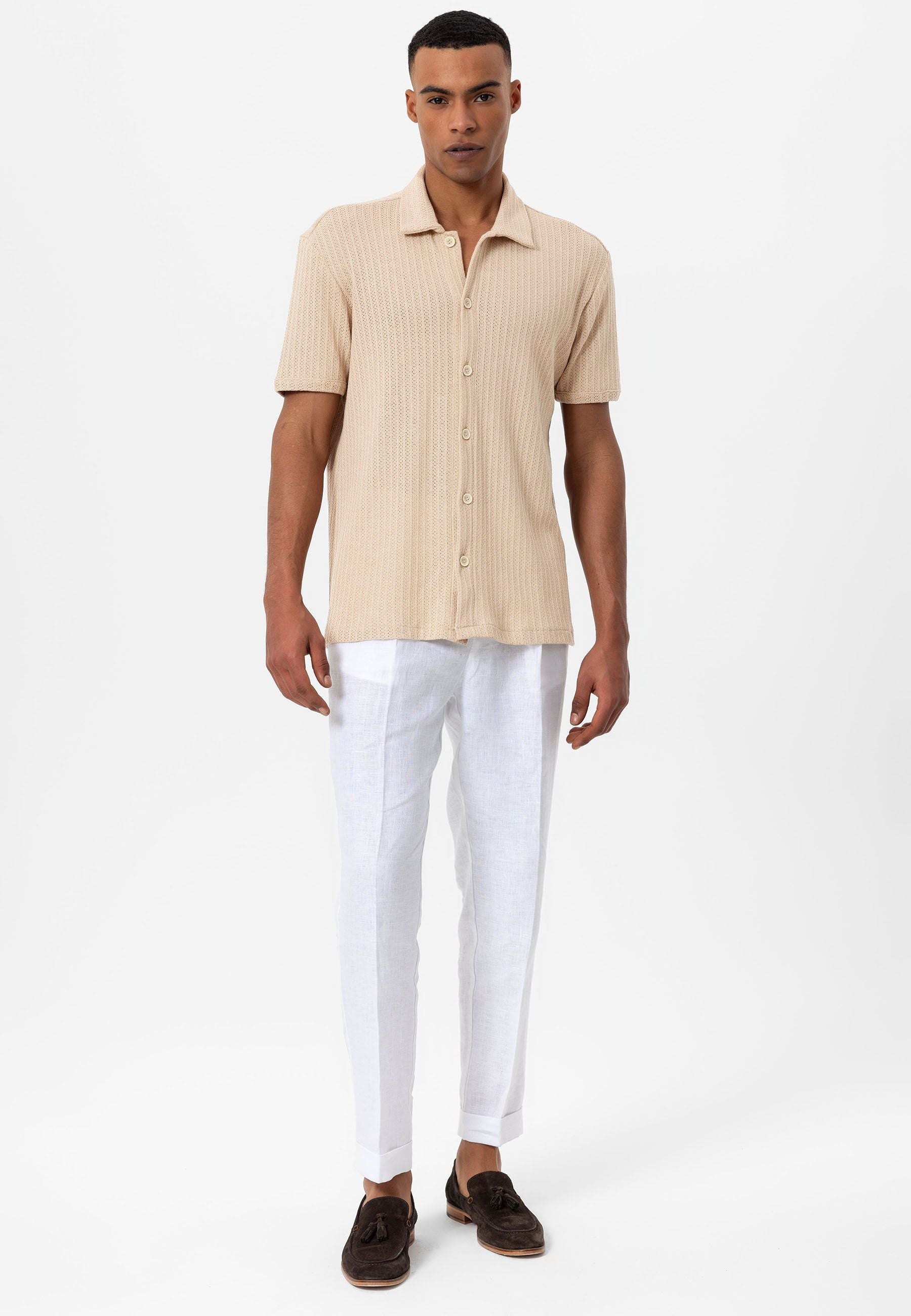The regular fit offers a relaxed yet structured silhouette, ensuring a flattering look while allowing comfort and ease of movement. The short sleeve design makes it perfect for warmer weather or layering under jackets for cooler days.